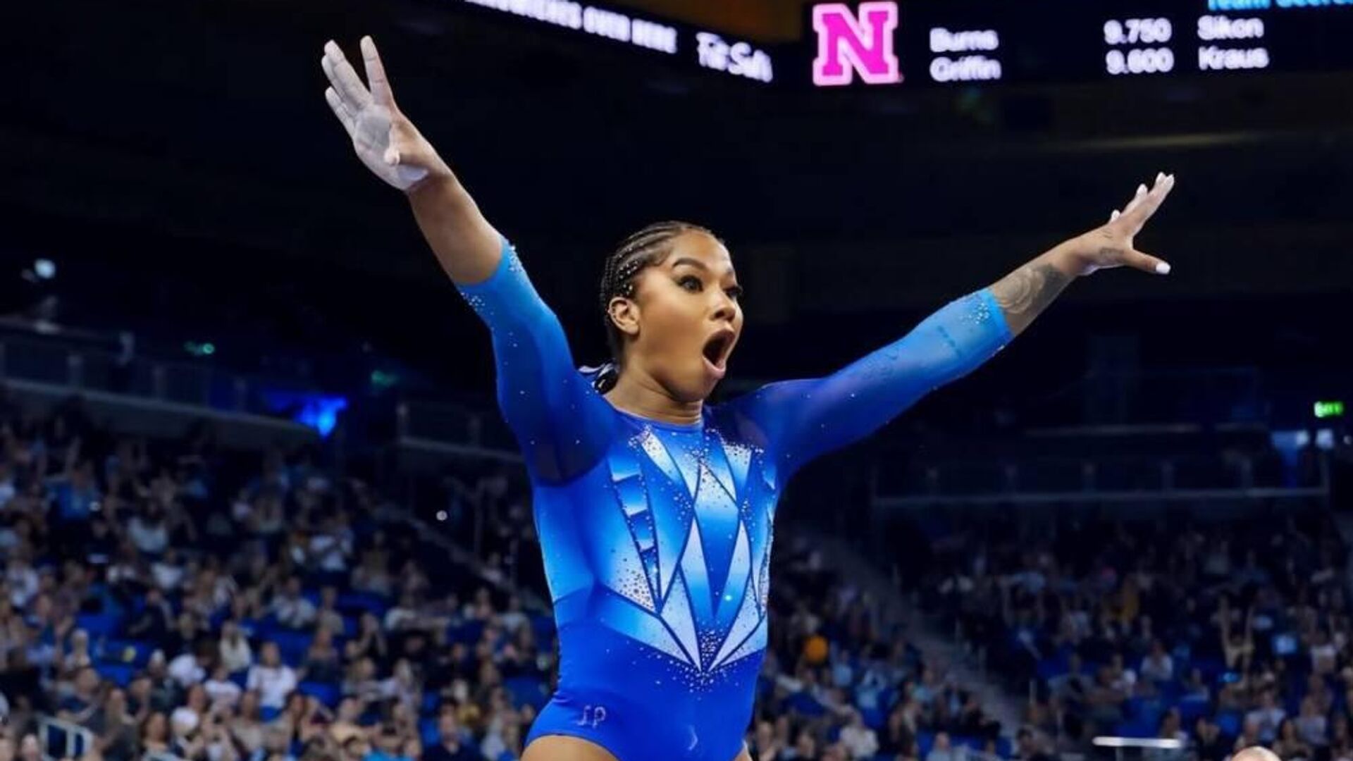 Джордан Чайлз, 24 года, также является обладательницей золотой медали Олимпиады в Париже, серебра Игр в Токио и золота чемпионата мира в командном многоборье.