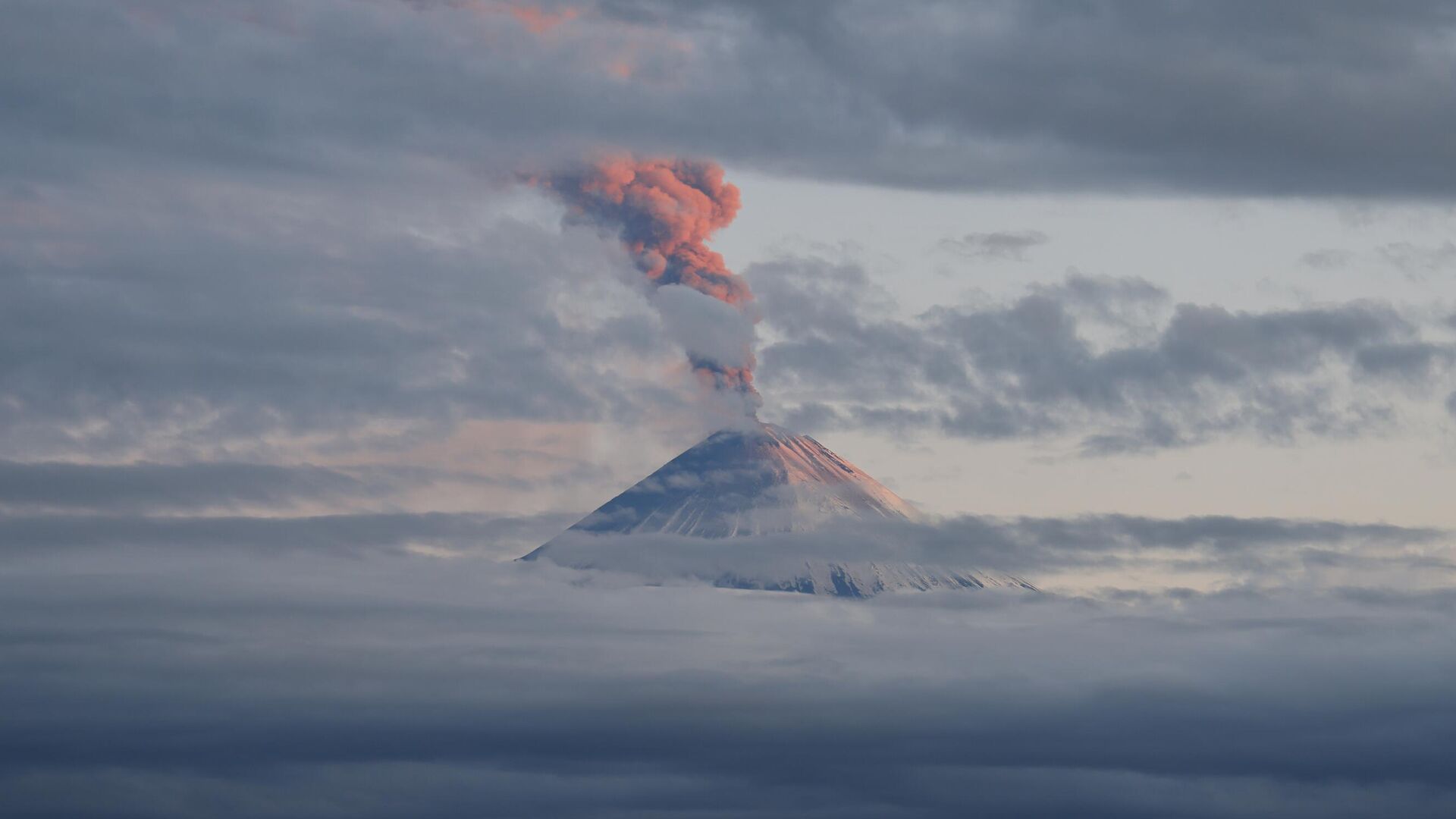 Над вулканом Ключевским на Камчатке наблюдается шлейф пепла